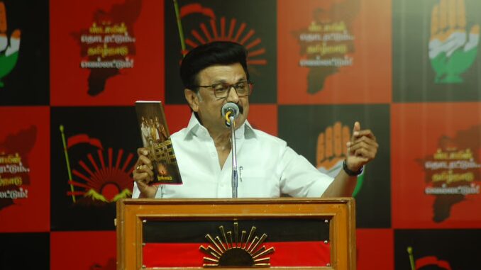 விருதுநகர் மாவட்டத்தில் தேமுதிக சார்பில் போட்டியிடும் விஜய பிரபாகரனை ஆதரித்து முதலமைச்சர் மு.க. ஸ்டாலின் இன்று (ஏப்.33) பரப்புரை மேற்கொண்டார்.