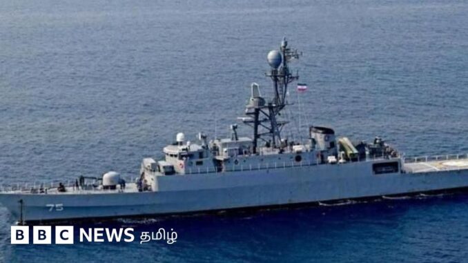 படக்குறிப்பு, இரானியக் கப்பலான ஐஆர்ஐஎஸ் புஷெரில் இருந்த சுமார் 200 பேர் கொழும்பு துறைமுகத்திற்கு அழைத்துச் செல்லப்பட்டுள்ளதாக இலங்கை கடற்படை தெரிவித்திருந்தது.