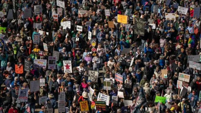 அமெரிக்கா முழுவதும் அதிபர் டிரம்புக்கு எதிராக, யாரும் மன்னர் இல்லை என்ற தலைப்பில் மிகப் பெரிய போராட்டங்கள், பேரணிகள் நடந்தன.