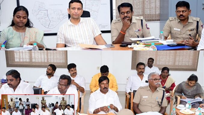 இக்கூட்டத்தில், உதவி தேர்தல் நடத்தும் அலுவலர் என். காளிதாஸ், காவல் துணை ஆணையாளர்கள் ஏ.சி. கார்த்திகேயன், வி.ஆர். சீனிவாசன், அங்கீகரிக்கப்பட்ட அரசியல் கட்சிகளின் பிரதிநிதிகள் மற்றும் அலுவலர்கள் கலந்து கொண்டனர்.