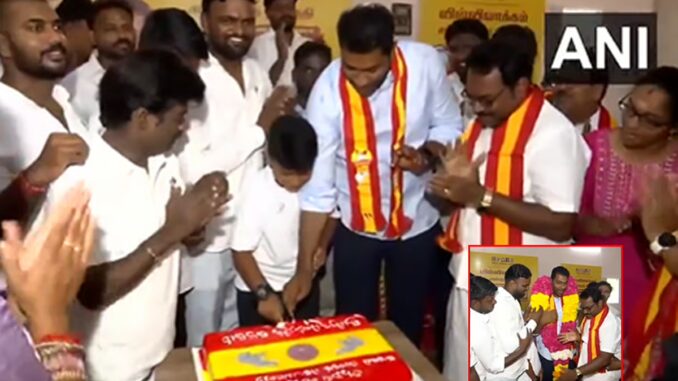 கட்சிகள் தொகுதி பங்கீடு, வேட்பாளர் தேர்வு உள்ளிட்ட பணிகளை முடித்து, தீவிர பிரசார பணிகளில் ஈடுபட்டு வருகின்றன. இந்நிலையில், தேர்தலில் தனித்து போட்டியிடும் த.வெ.க.வின், வில்லிவாக்கம் தொகுதிக்கான வேட்பாளர் மற்றும் அக்கட்சியின் தேர்தல் பிரசார மேலாண்மை பொதுச்செயலாளரான ஆதவ் அர்ஜுனா இன்று கேக் வெட்டி தன்னுடைய பிறந்த நாளை கட்சியினருடன் சேர்ந்து கொண்டாடினார்.