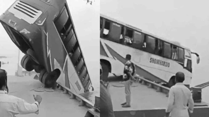 வங்கதேசத்தின் டாக்கா அருகே உள்ள ராஜ்பாரி மாவட்டத்தில் உள்ள பத்மா ஆற்றின் தௌலதியா படகு முனையத்திற்கு நேற்று (25.03.2026) மாலை 05:15 மணியளவில் சுமார் 40 பயணிகளுடன் பேருந்து ஒன்று சென்றது. அதன்படி பேருந்து தௌலதியா படகு முனையத்தின் 3வது தங்கு தளத்தில், இருந்து டாக்காவை நோக்கிச் சென்றபோது, படகில் ஏற முயன்றது. அப்போது கட்டுப்பாட்டை இழந்த பேருந்து மிதவைப் பாலத்திலிருந்து ஆற்றிற்குள் விழுந்தது.