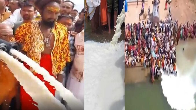மதச் சடங்கிற்காக நர்மதா ஆற்றில் 11ஆயிரம் லிட்டர் பால் ஊற்றப்பட்ட சம்பவம் நாடு முழுவதும் அதிர்வலையை ஏற்படுத்தியுள்ளது.