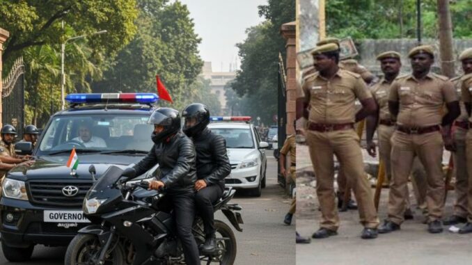 கடந்த 8-ம் தேதி இரவு திருவான்மியூரில் திருமண நிகழ்ச்சி ஒன்றில் கலந்து கொண்ட தமிழக ஆளுநர் ஆர்.என் ரவி நிகிழ்ச்சி முடித்துவிட்டு கிண்டியில் உள்ள “மக்கள் மாளிகை(ஆளுநர் மாளிகை)”-க்கு திரும்பி கொண்டு இருந்தார்.