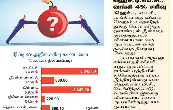 இருப்பினும், நேற்று இந்திய பங்குச் சந்தைகள் வீழ்ச்சியடைந்தன. வர்த்தகம் துவங்கிய முதல் ஒரு மணி நேரத்திலேயே முதலீட்டாளர்களின் சொத்துமதிப்பு கிட்டத்தட்ட 14 லட்சம் கோடி ரூபாய் சரிந்தது. போர் ஆரம்பித்த பிப்.,28ம் தேதியில் இருந்து இன்று வரை, கிட்டத்தட்ட 50 லட்சம் கோடி ரூபாய் இழப்பு இந்திய முதலீட்டாளர்களுக்கு ஏற்பட்டுள்ளது.