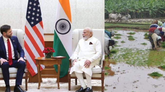 இந்தியா – அமெரிக்கா இடையே விரிவடைந்த வர்த்தக ஒப்பந்தத்தை ஏற்படுத்துவதற்கான பேச்சு வார்த்தைக்கு இந்தியாவிற்கு அமெரிக்க துணை அதிபர் ஜே.டி.வேன்ஸ் 4 நாள் பயணமாக இந்தியாவிற்கு வருகை தந்துள்ளார். இந்நிலையில் இந்தியா – அமெரிக்காவுடன் ஏற்படுத்த உள்ள வர்த்தக ஒப்பந்தத்தில் வேளாண்மை துறை சேர்க்கப்படாது என்பதை இந்தியா உறுதியுடன் தெரிவிக்க வேண்டும் என தமிழக விவசாயிகள் பாதுகாப்பு சங்கம் சார்பில் கோரிக்கை விடுக்கப்பட்டுள்ளது. இதுத்தொடர்பாக அவர் வெளியிட்டுள்ள அறிக்கையின் விவரம் பின்வருமாறு-