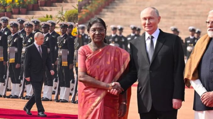 இரண்டு நாள் பயணமாக நேற்று இரவு ரஷ்யா அதிபர் புதின் இந்தியா வருகைதந்தார்.அவர் இன்று காலை குடியரசுத் தலைவர் மாளிகைக்கு வருகை தந்தார். அவரை, குடியரசுத் தலைவர் திரவுபதி முர்மு மற்றும் பிரதமர் மோடி ஆகியோர் வரவேற்றனர்.