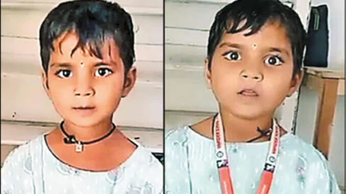 தெலுங்கானா மாநிலம், கரீம்நகர் மாவட்டம், ஜூப்ளிநகரை சேர்ந்தவர் ஸ்ரீசைலம். இவரது மனைவி மவுனிகா. இவர்களுக்கு கீதான்ஸ்ரீ (வயது 4), கீதான்விகா(4) என்ற இரட்டை பெண் குழந்தைகள் இருந்தனர். பெண் குழந்தைகள் பிறந்ததை காரணம் காட்டி ஸ்ரீசைலம் தனது மனைவியுடன் அடிக்கடி தகராறு செய்து வந்தார்.