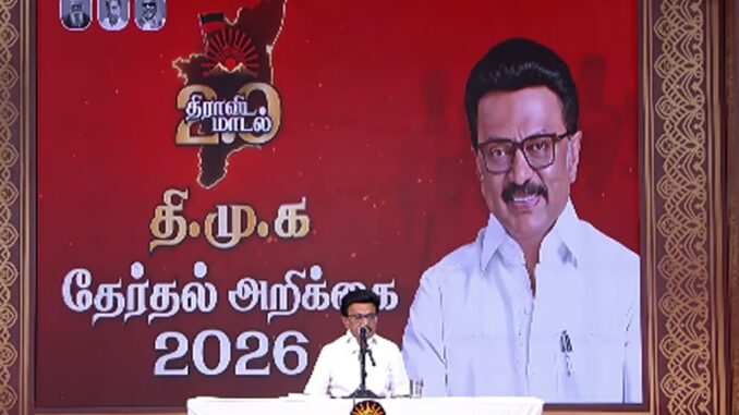 இந்நிலையில், திமுக தேர்தல் அறிக்கையை முதல்-அமைச்சர் மு.க.ஸ்டாலின் இன்று வெளியிட்டார்.