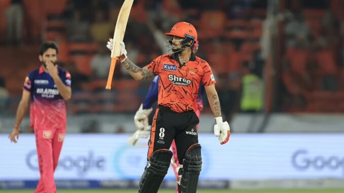 20 ஓவர்களின் முடிவில் 6 விக்கெட்டுகள் இழப்பிற்கு 216 ரன்கள் எடுத்தது. இதன்மூலம் ராஜஸ்தான் அணிக்கு 217 ரன்கள் இலக்கு நிர்ணயிக்கப்பட்டுள்ளது. ஹைதராபாத் தரப்பில் அதிகபட்சமாக அணியின் கேட்பன் இஷான் கிஷான் 91 ரன்களும், கிளாசன் 40 ரன்களும் எடுத்தனர்.