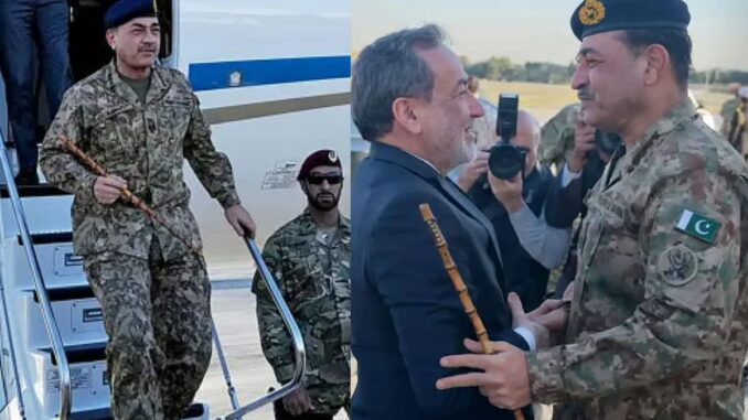பாகிஸ்தான் ராணுவத் தளபதி அசிம் முனீர் ஈரான் தலைநகர் தெஹ்ரானுக்குச் சென்றுள்ளார். அவரை பாகிஸ்தான் வெளியுறவுத் துறை அமைச்சர் அப்பாஸ் அரக்சி வரவேற்று உபசரித்தார்.