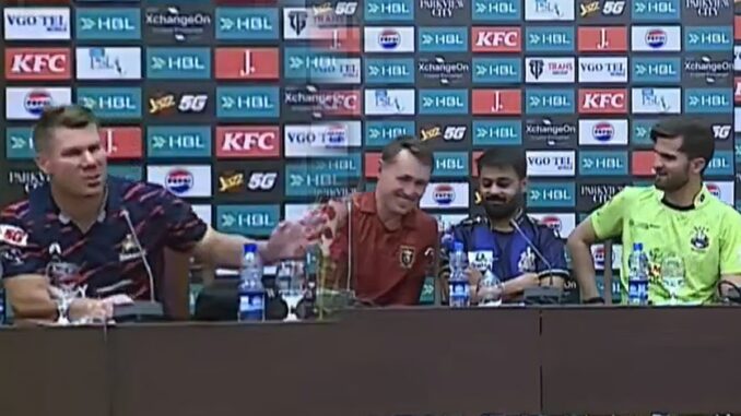 பாகிஸ்தான் சூப்பர் லீக் தொடரில் கராச்சி கிங்ஸ் அணியை வழிநடத்தும் டேவிட் வார்னர், செய்தியாளர் சந்திப்பின்போது சக கேப்டன்களை மீது கோபமடைந்த சம்பவம் பேசுபொருளாகியுள்ளது.