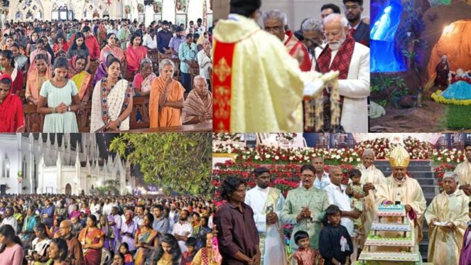 டெல்லியில் உள்ள செயின்ட் தாமஸ்தேவலாயம் வண்ண விளக்குகளால்அலங்கரிக்கப்பட்டு காட்சியளித்தது.ஜம்மு காஷ்மீரின்ஸ்ரீநகரில் அமைந்துள்ள புனிதகத்தோலிக்க தேவாலயத்தில் கிறிஸ்துமஸ் குடில் மின் விளக்குகளால் ஜொலித்தன.