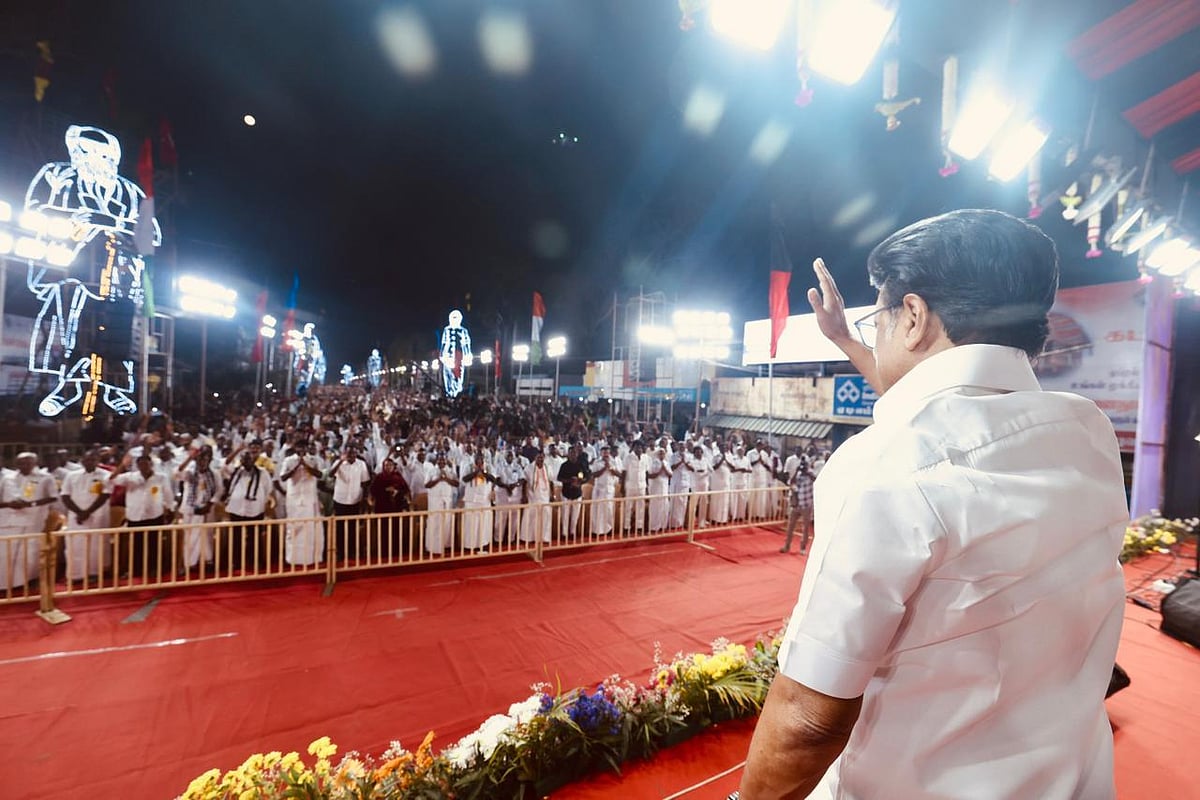 தமிழ்நாடு இன்று தலைநிமிர்ந்து இருக்குது. அந்த பெருமிதத்தோடு தான் தமிழ்நாட்டோட எதிர்காலம் நமக்கு எதிராக இருக்கக்கூடிய என்.டி.ஏ.கூட்டணிக்கும் தெரியும். 2011-ல் இருந்து 2021 வரைக்கும் தமிழ்நாட்டை பாழாக்கி தலைகுனிய வச்ச அ.தி.மு.க 2014-ல் இருந்து இந்தியாவை மோசமான நிலைக்கு அழைச்சிட்டுப் போயிருக்கக்கூடிய பா.ஜ.க-விடம் சரணாகதி அடைஞ்சு ஒரு கூட்டணி அமைச்சிருக்கு. அ.தி.மு.க-வை அழிவுப்பாதையில் அழைச்சிட்டுப் போற பழனிசாமி, பா.ஜ.க வினுடைய கிளைச் செயலாளராக இன்றைக்கு மாறியிருக்கிறார்.