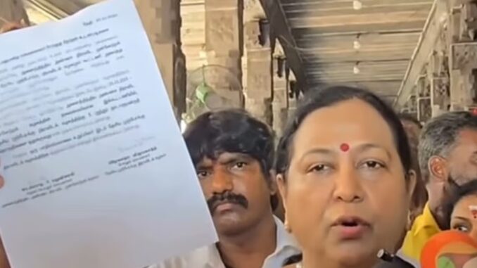 அதிமுக பொதுச்செயலாளர் எடப்பாடி பழனிசாமி 2024-ல் கையெழுத்திட்டு வழங்கிய தொகுதி பங்கீடு ஒப்பந்தத்தை செய்தியாளர்கள் முன்பு காண்பித்திருக்கிறார் தேமுதிக பொதுச்செயலாளர் பிரேமலதா விஜயகாந்த்.