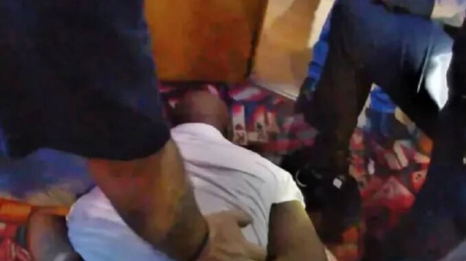 இதனையடுத்து காவல்துறையினர் அந்த பாருக்குள் சென்று, விபத்தை ஏற்படுத்திய கார் ஓட்டுநரான, கறுப்பினத்தை சேர்ந்த ஃபிராங்க் டைசன் (53) என்பவரை பிடிக்க முயன்றனர். அப்போது காவல்துறையினருக்கும் ஃபிராங்க் டைசனுக்கும் இடையே தள்ளுமுள்ளு ஏற்பட்டது.