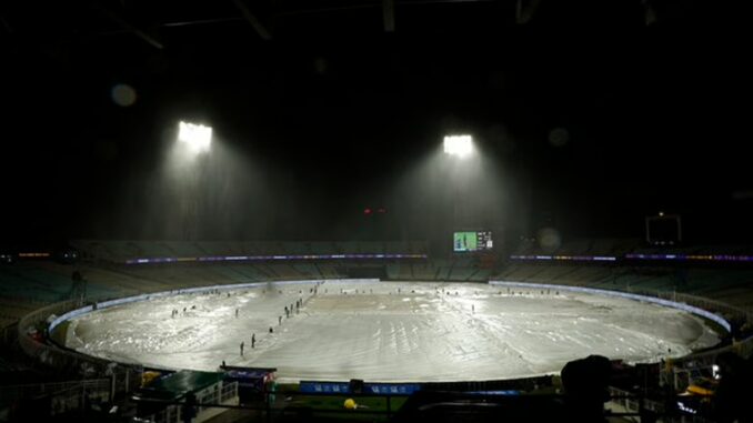 இந்த நிலையில் 3.4 ஓவர்களில் கொல்கத்தா அணி 2 விக்கெட்டுகள் இழப்புக்கு 25 ரன்கள் எடுத்திருந்த நிலையில் மழை பெய்தது. இதனால் கொல்கத்தா -பஞ்சாப் அணிகளுக்கு இடையிலான ஆட்டம் பாதிக்கப்பட்டது. ரஹானே 8 ரன்களுடனும், ரகுவன்ஷி 7 ரன்களுடனும் களத்தில் இருந்தனர்.
