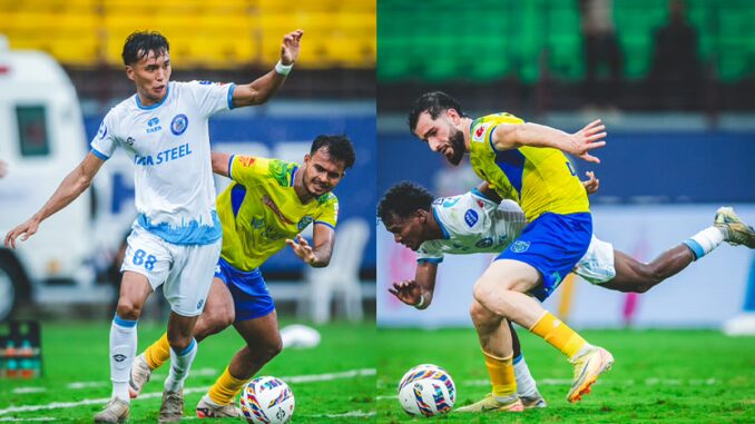14 அணிகள் இடையிலான 12-வது இந்தியன் சூப்பர் லீக் (ஐ.எஸ்.எல்.) கால்பந்து போட்டி இந்தியாவின் பல்வேறு நகரங்களில் நடந்து வருகிறது. இந்த தொடரில் கொச்சியில் இன்று மாலை நடைபெற்ற ஆட்டத்தில் கேரளா பிளாஸ்டர்ஸ் – ஜாம்ஷெட்பூர் எப்.சி. அணிகள் மோதின.