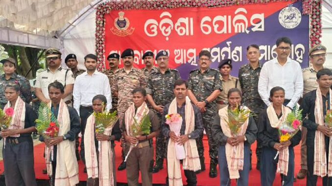 இந்நிலையில், ஒடிசா மாநிலம் களஹாண்டி மாவட்ட போலீஸ் தலைமையகத்தில் இன்று 11 நக்சலைட்டுகள் தங்களை கைவிட்டு சரணடைந்தனர். சரணடைந்த நக்சலைட்டுகளில் சிலர் மராட்டியம் உள்பட வேறு மாநிலங்களை சேர்ந்தவர்கள் ஆவர்.