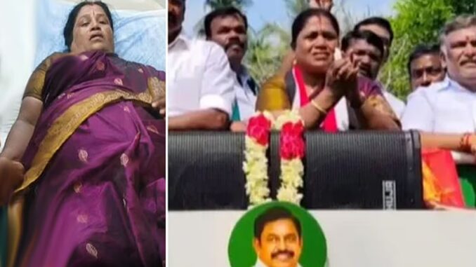 இந்த நிலையில், கடுமையான வெயில் காரணமாக அவர் திடீரென மயங்கி விழுந்தார். இதனால் அதிர்ச்சியடைந்த கட்சி நிர்வாகிகள், உடனடியாக அவரை மருத்துவமனையில் சிகிச்சைக்காக அனுமதித்தனர். தற்போது அவர் மருத்துவமனையில் சிகிச்சைப் பெற்று வருகிறார். கடும் வெயிலால் அதிமுக வேட்பாளர் மயங்கி விழுந்த சம்பவம் அப்பகுதியில் சிறிதுநேரம் பரபரப்பை ஏற்படுத்தியது.