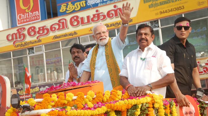 பிரதமர் மோடி கன்னியாகுமரி மாவட்டம் நாகர்கோவிலில் வேப்பமூடு முதல் வடசேரி வரை ‘ரோடு ஷோ’ மூலம் தேர்தல் பிரசாரம் மேற்கொண்டார். பிரதமருடன் அ.தி.மு.க, பொதுச்செயலாளர் எடப்பாடி பழனிசாமி, பா.ஜ.க., மாநில தலைவர் நயினார் நாகேந்திரன் ஆகியோர் கலந்து கொண்டனர்.