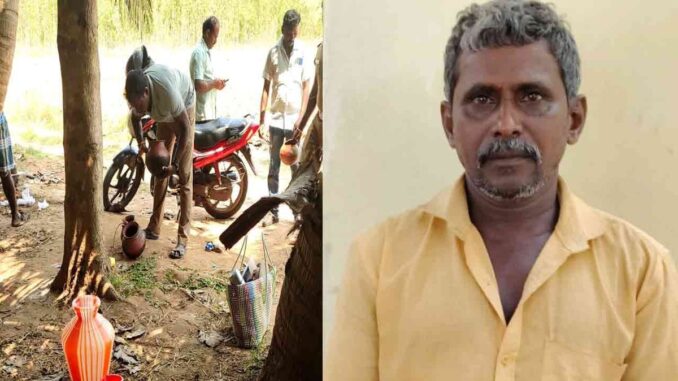 இந்த பிரச்சனை, அப்பகுதியில் பரபரப்பாக களம்பிய நிலையில் நேற்று (22-03-26) வடகாடு போலீசார் தேடி பனைமரங்களில் கள் இறக்க பயன்படுத்திய பானைகளை கல்வீசி உடைக்க முயன்று முடியாத நிலையில் மரத்தில் ஏறி பானைகளை அகற்றியதுடன், கள் விற்பனைக்கு மயன்படுத்திய குடம், அளவு குவளை, பிளாஸ்டிக் கவர்கள், வடிகட்டி ஆகியவற்றை கைப்பற்றினர். ஆனால் கள் இறக்கி விற்பனை செய்த பனை ஏறும் தொழிலாளி தலைமறைவானார்.