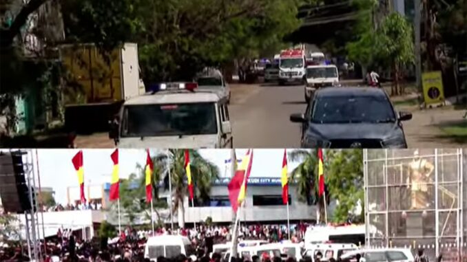 தவெக தலைவர் விஜய் இன்று காரைக்குடியில் தேர்தல் பிரசாரம் மேற்கொள்ள உள்ளார். இதற்காக சென்னையில் இருந்து தனி விமானம் மூலம் மதுரை வந்த விஜய், அங்கிருந்து தனது பிரசார வேனில் பயணித்தபடி ரோடு ஷோவாக வந்தார்.