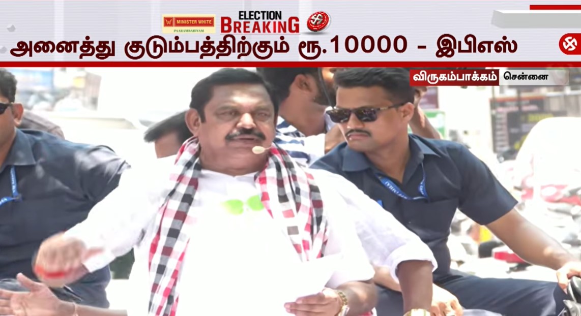 அதிமுக ஆட்சி அமைந்தால் ஒவ்வொரு குடும்பத்திற்கும் 10 ஆயிரம் ரூபாய் வழங்கப்படும் என இபிஎஸ், மீண்டும் உறுதி அளித்துள்ளார்.