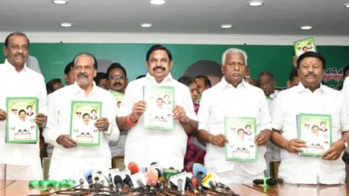 தேர்தல் அறிக்கையை வெளியிட்டுப் பேசிய எடப்பாடி பழனிசாமி, திமுக அரசு தனது வாக்குறுதிகளை நிறைவேற்றத் தவறிவிட்டதாகக் குற்றம் சாட்டினார். எம்ஜிஆர் மற்றும் ஜெயலலிதாவின் வழியில் மக்கள் நலத் திட்டங்களைத் தொடரப் போவதாகக் குறிப்பிட்ட அவர், குடும்ப அட்டைதாரர்களுக்குப் பல்வேறு சலுகைகளை அறிவித்துள்ளார். குறிப்பாக, அரிசி குடும்ப அட்டைதாரர்களுக்கு விலையில்லா குளிர்சாதனப் பெட்டி (Fridge) வழங்கப்படும் என்று அறிவித்தார்.