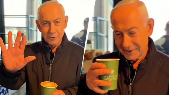 கையில் காபியுடன் பெஞ்சமின் நெதன்யாகு; கொல்லப்பட்டதாக பரவிய வதந்திக்கு முற்றுப்புள்ளி