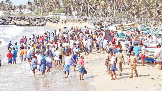 அப்போது நடுக்குப்பம் மீனவ கிராமத்தைச் சேர்ந்த ஆண்கள், பெண்கள் என சுமார் 500-க்கும் மேற்பட்டோர் கடலில் இறங்கி அரசுக்கு எதிராக கோஷங்கள் எழுப்பினர்.