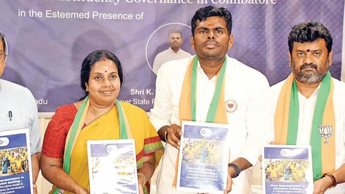 கோவை: தமிழகத்தில் ‘சூப்பர் சிஎம்’ ஆக முதல்வர் ஸ்டாலினின் மருமகன் சபரீசன் செயல்படுகிறார் என அண்ணாமலை கூறினார். கோவை தெற்கு தொகுதியில் எம்எல்ஏ வானதிசீனிவாசன் மேற்கொண்ட சிறப்பு பணிகள் குறித்த தன்னார்வ அமைப்பின் ஆய்வறிக்கை வெளியீட்டு நிகழ்வு, கோவை கணபதியில் நேற்று நடந்தது.