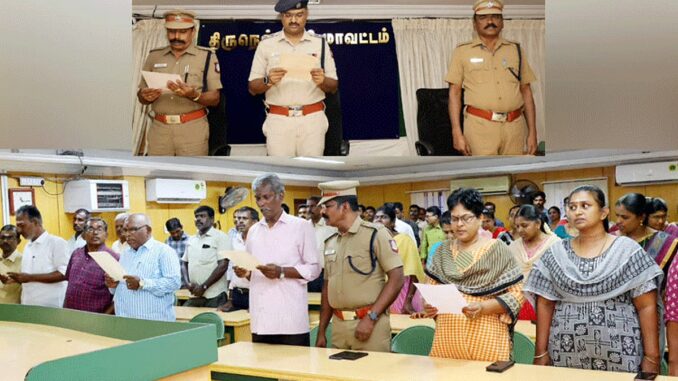 திருநெல்வேலி மாவட்ட எஸ்.பி. அலுவலகத்தில் மாவட்ட எஸ்.பி. பிரசண்ணகுமார் தலைமையில் காவல்துறையினர் மற்றும் அமைச்சு பணியாளர்கள் அனைவரும் நேற்று சமத்துவ நாள் உறுதிமொழி எடுத்து கொண்டனர்.