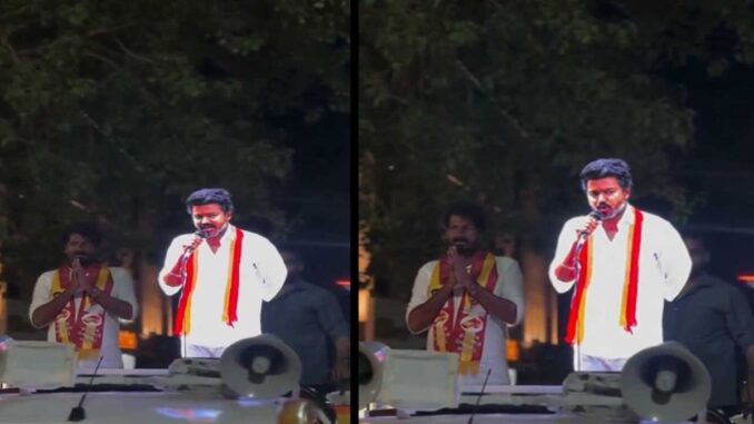 இந்த நிலையில், இவை அனைத்தும் முற்றிலும் மாறுபட்ட வகையில் கும்பகோணம் தொகுதி தவெக வேட்பாளர் ஒருவர் நூதன முறையில் வாக்கு சேகரித்து பலரது கவனத்தையும் ஈர்த்துள்ளது. தஞ்சாவூர் மாவட்டம் கும்பகோணம் தொகுதியில் தவெக சார்பில் வினோத் ரவி என்பவர் போட்டியிடுகிறார். இவர் தனது தொகுதியில், ஹாலோகிரோபி தொழில்நுட்பம் மூலம் விஜய் நின்று பேசி வாக்கு கேட்பது போல் வாக்கு சேகரிப்பில் ஈடுபட்டுள்ளார். ஏஐ தொழில்நுட்பத்தைப் பயன்படுத்தி ஹாலோகிரோபி மூலம் விஜய் வாக்கு சேகரிப்பில் ஈடுபட செய்தது தொடர்பான வீடியோ இணையத்தில் வைரலாகி வருகிறது.