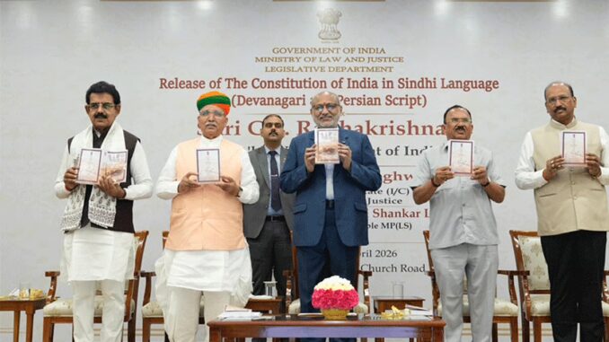 இன்று துணை ஜனாதிபதி மாளிகை இந்திய அரசியலமைப்பின் சிந்தி மொழி பதிப்பின் தேவநாகரி மற்றும் பாரசீக ஆகிய இரு எழுத்துகளிலும் துணை குடியரசு தலைவர் சி. பி. ராதாகிருஷ்ணன் வெளியிட்டார்.