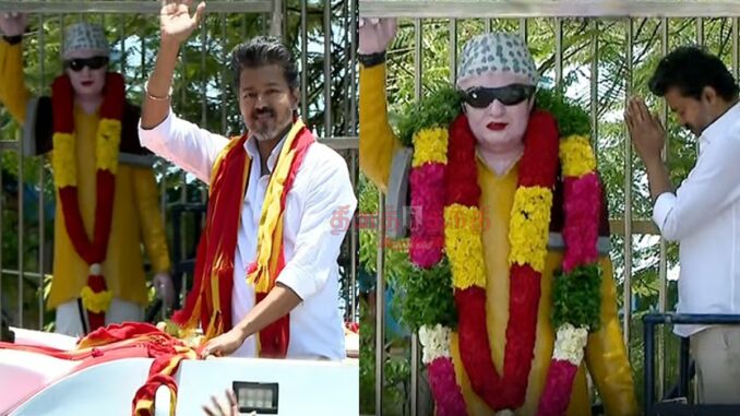 இன்று வேட்புமனு தாக்கல் செய்ய முடியும் என்பதால், திருச்சி கிழக்கு தொகுதியில் வேட்புமனு தாக்கல் செய்வதற்காக இன்று (வியாழக்கிழமை) காலை சென்னையில் இருந்து தனி விமானம் மூலம் விஜய் திருச்சிக்கு சென்றார். அங்கு கிழக்கு தொகுதி தேர்தல் நடத்தும் அதிகாரி அலுவலகம் அமைந்துள்ள திருச்சி மாநகராட்சி இரண்டாவது மண்டலக்குழு அலுவலகத்தில் தனது வேட்புமனுவை தாக்கல் செய்தார். அதன் பின்னர் திறந்த வேனில் நின்றபடியே மரக்கடை எம்.ஜி.ஆர். சிலை அருகே விஜய் தேர்தல் பிரசாரம் செய்தார். திருச்சி கிழக்கில் பிரசாரத்தை தொடங்குவதற்கு முன்பு எம்.ஜி.ஆ.ர் சிலைக்கு மாலை அணிவித்து விஜய் மரியாதை செலுத்தினார்.