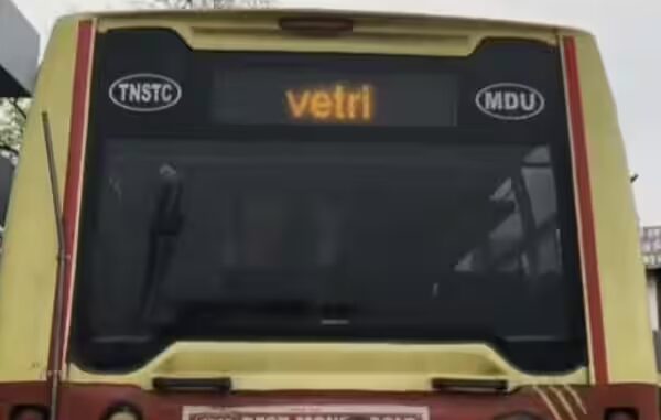இதை கண்ட பயணி ஒருவர் தனது அலைபேசியில் வீடியோ எடுத்தார். பஸ் டிரைவர் உடனடியாக டிஜிட்டல் பலகையில் எழுத்துக்களை மாற்றினார். சில நாட்களுக்கு முன் தேனி மாவட்டத்திலும் இதே போல் அரசு பஸ் டிஜிட்டல் பலகையில் தமிழக வெற்றிக் கழகம் என பெயர் ஒளிபரப்பானது.