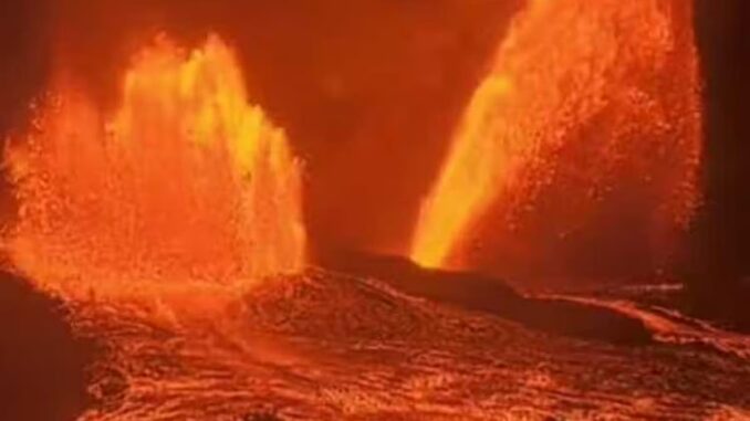 சுமார் 625 அடி உயரத்திற்கு நெருப்பை வெளியேற்றிய கிலாவியா எரிமலை