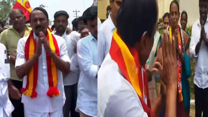 இதையடுத்து தொடர்ந்து கட்சி பணியாற்றி வந்த செங்கோட்டையனுக்கு, ஏப்ரல் 23ஆம் தேதி நடைபெறும் சட்டமன்ற பொதுத்தேர்தலில் கோபிசெட்டிபாளையம் தொகுதியில் போட்டியிட தவெக தலைவர் விஜய் வாய்ப்பு அளித்துள்ளார். அதன்படி ஈரோடு மாவட்டம் கோபிசெட்டிபாளையம் தொகுதியில் போட்டியிட வேட்புமனு தாக்கல் செய்ய தேர்தல் அலுவலகத்துக்கு நேற்று முன் தினம் சென்றார். அப்போது நாம் தமிழர் கட்சி சார்பாக அதே தொகுதியில் போட்டியிட சீதாலட்சுமி வேட்புமனு தாக்கல் செய்துவிட்டு எதிரே வந்து கொண்டிருந்தார். அப்போது உடனே சீதாலட்சுமி செங்கோட்டையனை பார்த்து, ‘பெரியப்பா விவசாயி சின்னத்துக்கு எனக்கு ஓட்டு போடுங்க..’ என்று கையெடுத்து கும்பிட்டு வாக்கு கேட்டார். இதனை கண்ட செங்கோட்டையனும் சிரித்துக்கொண்டே வாழ்த்திவிட்டு அங்கிருந்து சென்றார். இதனை கண்ட அங்கிருந்த தொண்டர்கள் வியப்பில் ஆழ்ந்தனர்.
