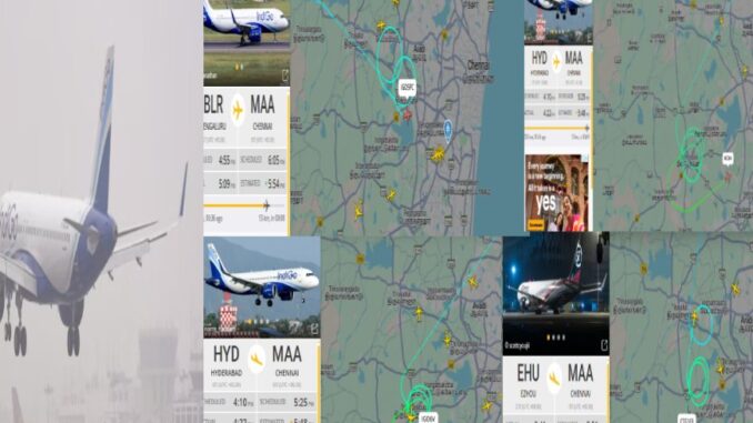 குறிப்பாக, பாட்னாவில் இருந்து சென்னை , டெல்லியில் இருந்து சென்னை, பெங்களூரில் இருந்து சென்னை, கோயம்புத்தூரில் இருந்து சென்னை, இந்தூரில் இருந்து சென்னை,  ஹைதராபாத்தில் இருந்து சென்னை, கொல்கத்தாவில் இருந்து சென்னை என 8 இண்டிகோ பயணிகள் விமானம் வானத்தில் வட்டமடித்துக் கொண்டிருக்கின்றன.