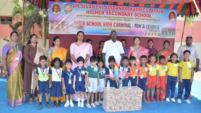 சென்னையை அடுத்த புழலில் உள்ள டாக்டர் சிவந்தி ஆதித்தனார் மெட்ரிக் மேல்நிலைப்பள்ளியில் நேற்று விளையாட்டின் மூலம் கற்றுக்கொள் (Fun and Learn) என்ற தலைப்பில் பள்ளிகளுக்கு இடையேயான குழந்தைகள் திருவிழா கொண்டாடப்பட்டது. சென்னை வாழ் நாடார்கள் சங்கம் மற்றும் காமராஜ் கல்வி ஆராய்ச்சி மற்றும் அறக்கட்டளையின் தலைவர் தங்கமுத்து தலைமையில், சங்கப் பொதுச் செயலாளர் செல்வகுமார் முன்னிலை வகிக்க பள்ளியின் முதல்வர் ராஜராஜேஸ்வரி வரவேற்று பேசினார். இதில் புழல் சுற்றுவட்டாரத்தில் உள்ள 7 மழலையர் பள்ளிகள் டிவைன் பட்ஸ், குருகுலம், லிட்டில் பேர்ல்ஸ், மாடல் லெஜெண்ட்ஸ், சுபம் மற்றும் டைனி கென் கென்ஸ்யா போன்ற பள்ளிகள் தங்களது குழந்தைகள் மற்றும் அவரது பெற்றோர், தாத்தா பாட்டிகளுடன் வந்து கலந்து கொண்டு சிறப்பித்தனர்.