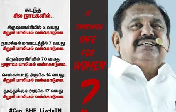சென்னை: தமிழகத்தில் கடந்த சில நாட்களில் கிருஷ்ணகிரியில் 2 வயது சிறுமிக்கு பாலியல் வன்கொடுமை சம்பவம் உட்பட 5