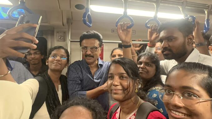 இந்நிலையில், திமுக தலைவரும், முதல்-அமைச்சருமான மு.க.ஸ்டாலின் இன்று சென்னை மெட்ரோ ரெயிலில் பயணித்து வாக்கு சேகரித்தார். சென்னை சென்டிரலில் இருந்து தேனாம்பேட்டை வரை மெட்ரோ ரெயிலில் பயணம் செய்தார். அப்போது அரசின் நலத்திட்டங்கள் குறித்து பயணிகளுடன் கலந்துரையாடி, வாக்கு சேகரித்தார். பின்னர் மெட்ரோ வளாகத்தில் முதல்-அமைச்சருடன் பயணிகள் கலந்துரையாடி செல்பி எடுத்துக் கொண்டனர்.