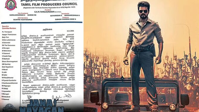தமிழ்த் திரைப்படத் தயாரிப்பாளர்கள் சங்கத்தின் தலைவர் திரு.ஜி.கே.எம்.தமிழ்குமரன் மற்றும் நிர்வாகிகள் இணைந்து அறிக்கை வெளியிட்டுள்ளார்கள். அதில், கேவிஎன் நிறுவனத்தின் சார்பில் மிகப்பெரிய பட்ஜெட்ல் உருவான நடிகர் விஜய் அவர்கள் நடித்த “ஜனநாயகள்” முழுத்திரைப்படம் இணையத்தில் வெளியானது என்ற செய்தி தமிழ்த் திரையுலகை அதிர்ச்சியில் தள்ளியுள்ளது. இது வன்மையாக கண்டிக்கூடிய செயலாகும். மேலும், ரூ.500-கோடி முதலீடு செய்துள்ள இந்த திரைப்படத்தின் வருவாய் முற்றிலும் பாதிப்புக்குள்ளாகி மிகப்பெரிய பொருளாதார இழப்பு ஏற்பட்டு தயாரிப்பாளர் இக்கட்டான சூழ்நிலையில் தள்ளப்பட்டுள்ளார். எந்தவித அக்கறையும் இல்லாத சிலபேர் செய்த செயலால் திரையுலகமே ஸ்தம்பிக்கும் நிலைக்கு தள்ளப்பட்டுள்ளது.