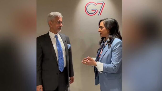பிரான்ஸ் நாட்டின் அப்பயி டிஸ் வாக்ஸ்-டி-செர்னே நகரில் ஜி7 வெளியுறவு துறை மந்திரிகளுக்கான கூட்டம் நேற்று நடந்தது. இதில் பங்கேற்பதற்காக மத்திய வெளிவிவகாரதுறை மந்திரி ஜெய்சங்கர் டெல்லியில் இருந்து புறப்பட்டு சென்றார். அங்கு கனடா நாட்டின் வெளியுறவுதுறைக்கான மந்திரி அனிதா ஆனந்தை சந்தித்து பேசினார்.