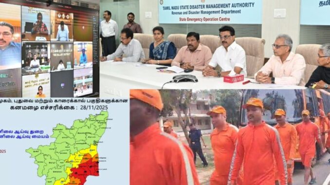 டிட்வா புயல் கனமழை எச்சரிக்கையைத் தொடர்ந்து தமிழ்நாடு மற்றும் புதுச்சேரி மாநில பேரிடர் மேலாண்மை அதிகாரிகளின் வேண்டுகோளை அடுத்து மீட்பு நடவடிக்கைகளை மேற்கொள்வதற்காக 6 மாவட்டங்களுக்கு தேசிய பேரிடர் மீட்புக் குழுவினர் விரைந்துள்ளனர்.