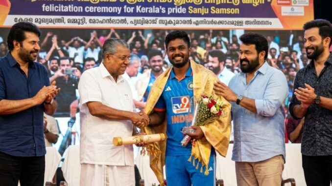 சஞ்சு சாம்சனின் இந்த சிறப்பான ஆட்டத்தால் தான் இந்தியா கோப்பையை கைப்பற்றியது என்று சொன்னால் அது மிகையாகாது. அவ்வகையில் சஞ்சு சாம்சனின் மறக்கமுடியாத இந்த உலகக்கோப்பை ஆட்டத்தை பாராட்டி பிரபல மலையாள நடிகர்கள் பதிவிட்டு வருகின்றனர்.மலையாள சூப்பர் ஸ்டார்களான மம்மூட்டி, மோகன்லால் மற்றும் பிரித்விராஜ் ஆகியோர் சஞ்சு சாம்சனை புகழ்ந்து பதிவிட்டுள்ளனர்.