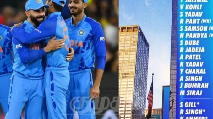 இந்த நிலையில் டி20 உலகக்கோப்பை கிரிக்கெட் போட்டியில் பங்கு பெறும் 15 பேர் கொண்ட இந்திய அணியை பிசிசிஐ இன்று அறிவித்துள்ளது. அதன்படி ரோகித் சர்மா தலைமையிலான இந்திய அணியில் ஜெய்ஷ்வால், விராட் கோலி, சூர்யகுமார் யாதவ் , ரிஷப் பந்த், ஹர்திக் பாண்டியா, ஜடேஜா, அக்சர் படேல், குல்தீப் யாதவ், சாஹல், அர்ஷ்தீப் சிங், முகமது சிராஜ், பும்ரா உள்ளிட்டோர் இடம் பெற்றுள்ளனர். இதில் ஹர்திக் பாண்டியா துணை கேப்டனாக இருப்பார் என அறிவிக்கப்பட்டுள்ள நிலையில் மாற்று வீரர்களாக சுப்மன் கில், ரிங்கு சிங், கலீல் அகமது, ஆவேஷ் கான் ஆகியோரும் அணியில் இடம்பெற்றுள்ளனர்.