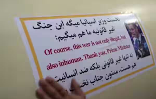 இந்த நிலையில், போருக்கு எதிராக ஸ்பெயின் பிரதமர் கூறிய வாசகங்கள் அடங்கிய ஸ்டிக்கர்கள் ஒட்டப்பட்ட ஏவுகணைகளை இஸ்ரேல் மீது ஈரான் வீசி வருவதாக அந்நாட்டு ஊடகங்கள் செய்தி வெளியிட்டுள்ளன.