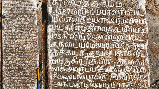 தஞ்சை மாநகர ராஜகோபாலசாமி தெருவில் உள்ள கிட்டப்பா வட்டாரத்தில் பிற்கால கல்வெட்டு ஒன்று கண்டெடுக்கப்பட்டுள்ளது. கல்வெட்டை தஞ்சை சரசுவதி மகால் நூலக தமிழ்ப்பண்டிதரும், வரலாற்று ஆய்வாளருமான மணிமாறன், ஓய்வு பெற்ற தலைமை ஆசிரியர் தில்லை கோவிந்தராஜன், பட்டதாரி ஆசிரியர் ஜெயலட்சுமி, ஏடகம் சுவடியியல் மாணவர் சரவணன் ஆகியோர் ஆய்வு செய்தனர். பின்னர் அவர்கள் கூறியதாவது:-